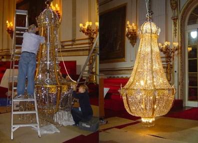 Cleaning chandeliers in London and the South East, with over 50 years experience. We clean each piece by hand - not using sprays which can cause untold damage.